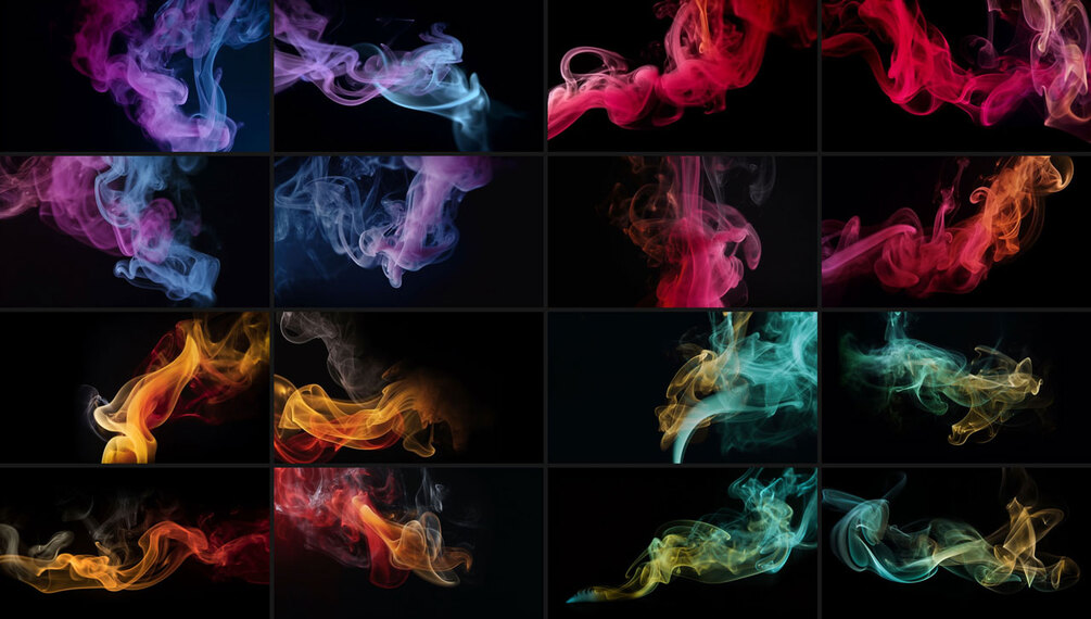 Here's a collection of color smoke. 16 images. The resolution sizes are 1456x816. All PNGs.